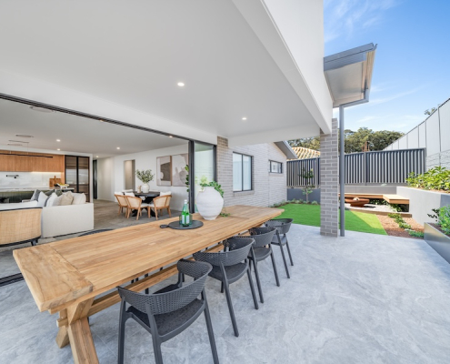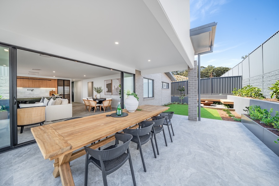 This is a great example of when planning the outdoor space alongside the new home build results in outdoor spaces that complement the home and add instant appeal to prospective home buyers.